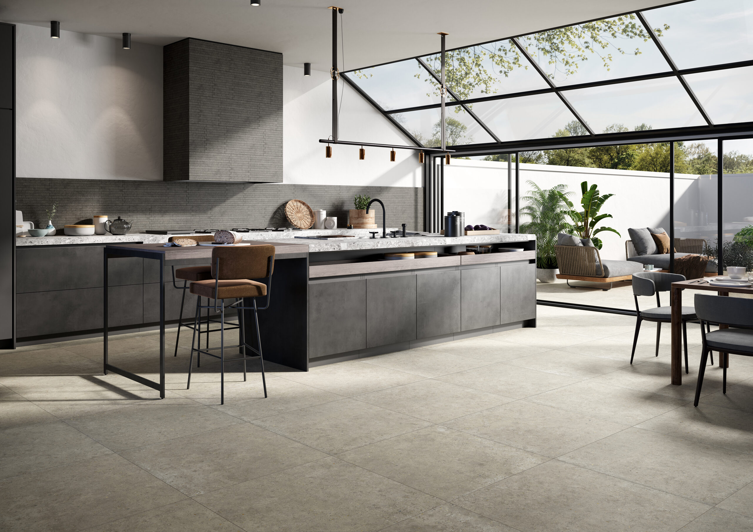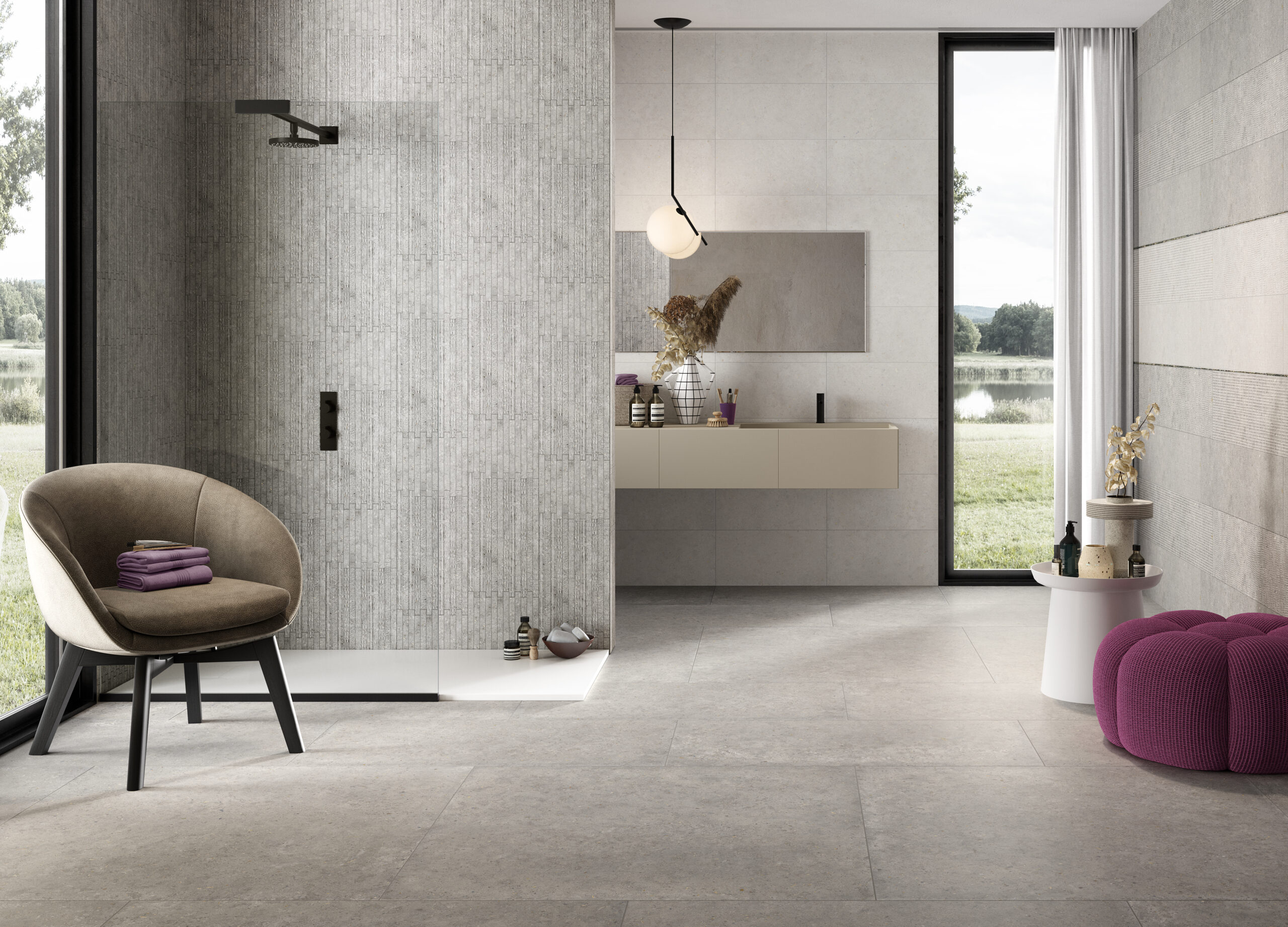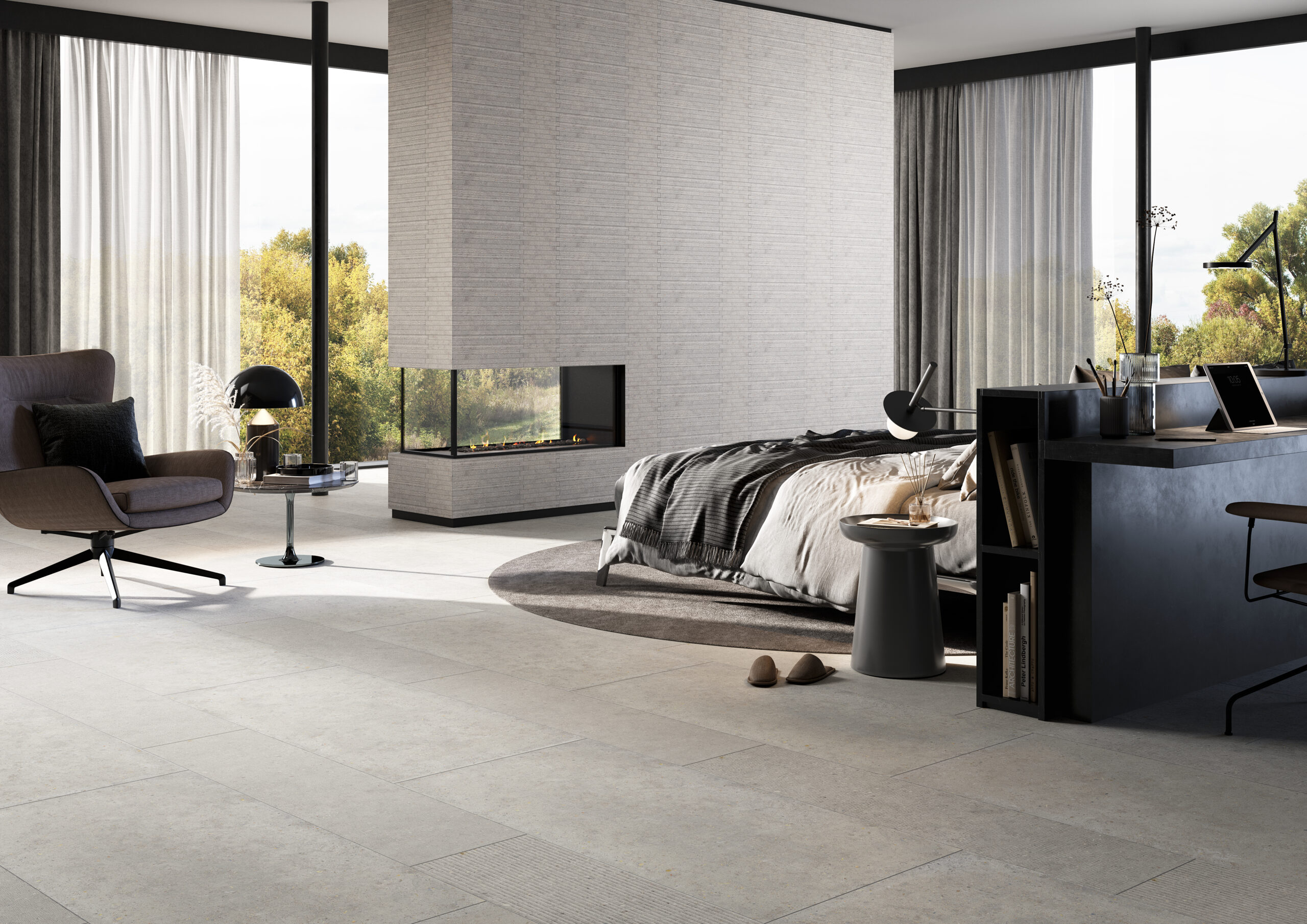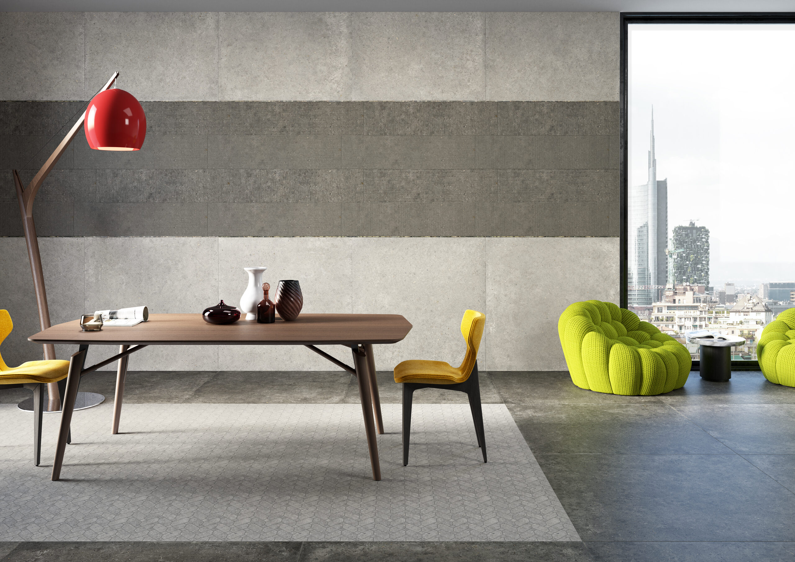 Un effetto pietra dall’estetica articolata, ricca di suggestioni minerali
