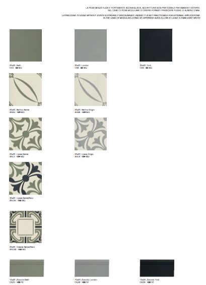 Gres porcellanato tutta massa con superficie già trattata R10, antiscivolo, adatto a tutti gli ambienti. Particolarmente indicato nelle ristrutturazioni inizio secolo, grazie alle 3 diverse decorazioni in stile Liberty, classico o retro’.