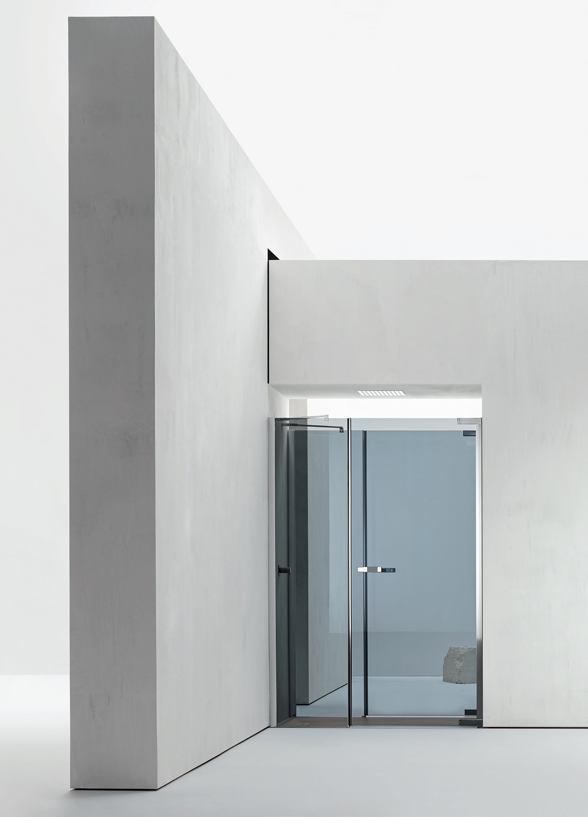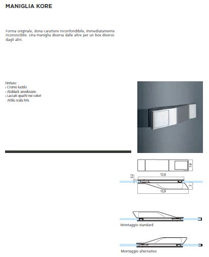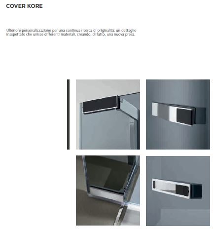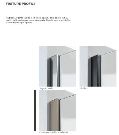 Kore consente la massima personalizzazione nelle finiture di vetri e profili. Questi ultimi sono disponibili in argento lucido, Alublack (alluminio anodizzato ossidato) e possono essere laccati, assieme ai diversi componenti, con un colore Ral a scelta, lasciando così spazio alla creatività del cliente.
