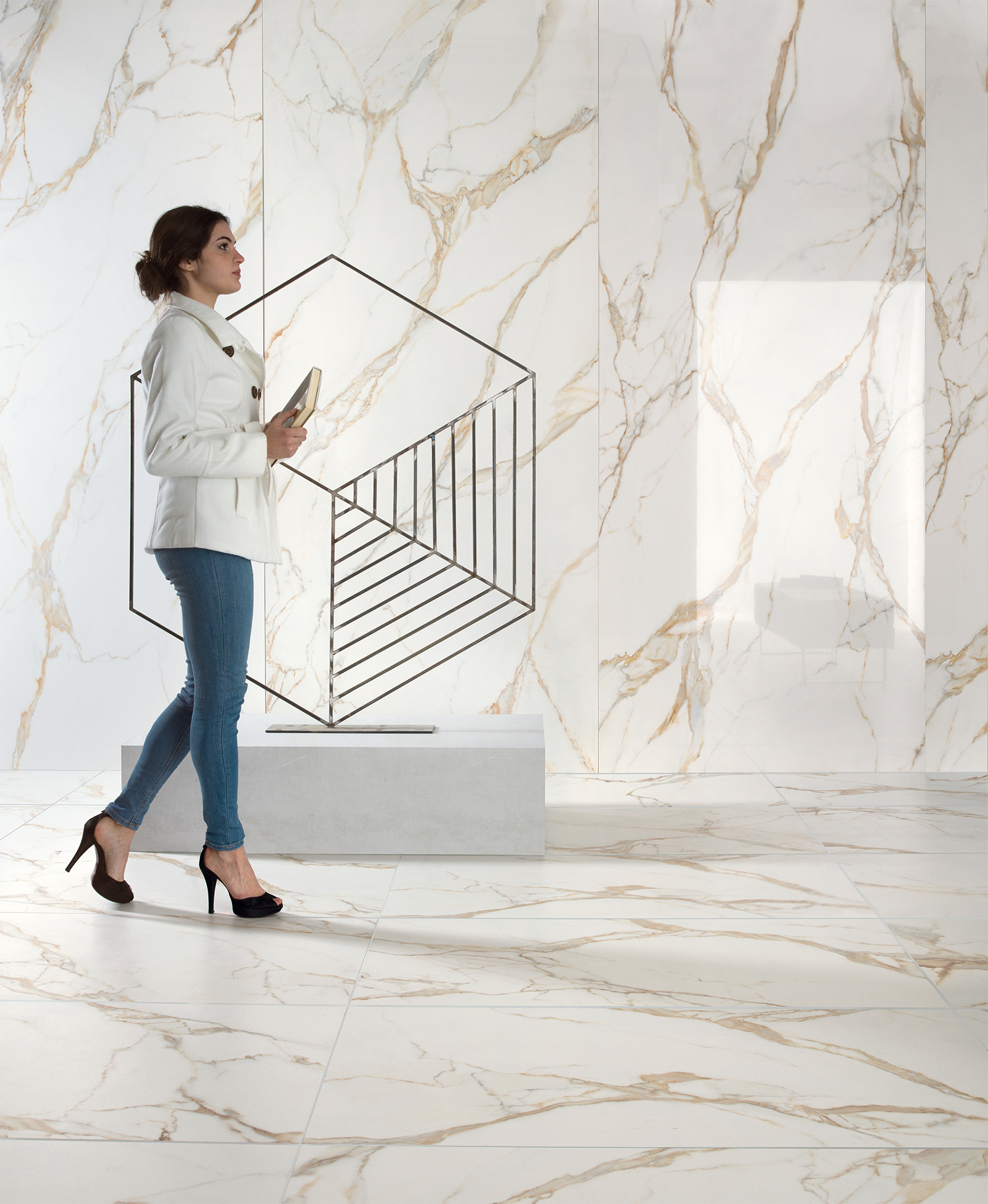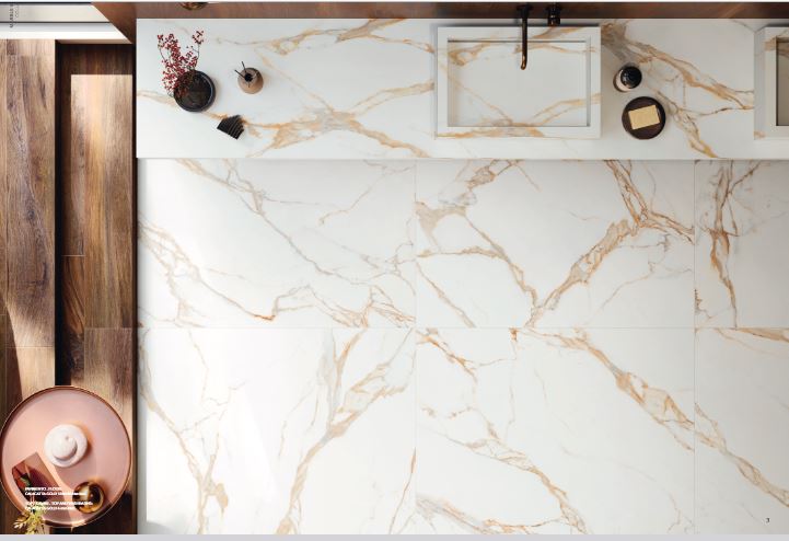 CALACATTA GOLD by TAGINA è una collezione in gres porcellanato che si ispira al prezioso marmo italiano cavato in Toscana, nelle Alpi Apuane. L’aspetto scenografico delle sue preziose venature giallo-oro, esaltate da un fondo bianco-paglierino, la rendono una collezione ideale per arredare ambientazioni lussuose, anche con oggettistica minimale, nonché moderne