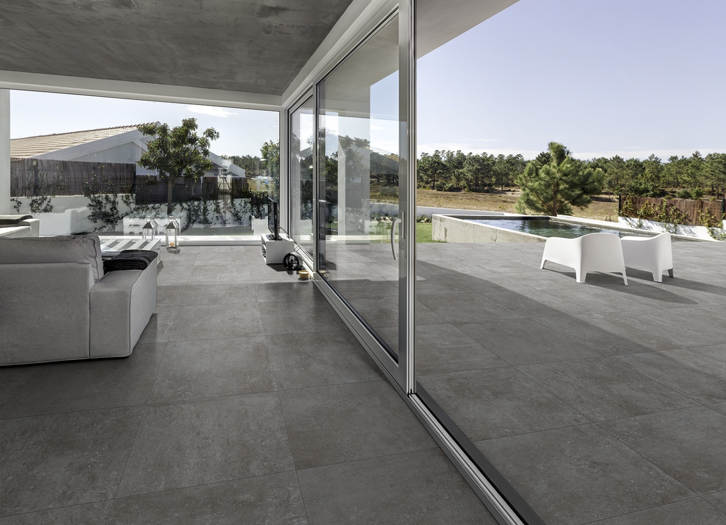 In linea con i canoni architettonici moderni, trova la propria ispirazione nelle superfici effetto cemento dal tipico sapore industriale.