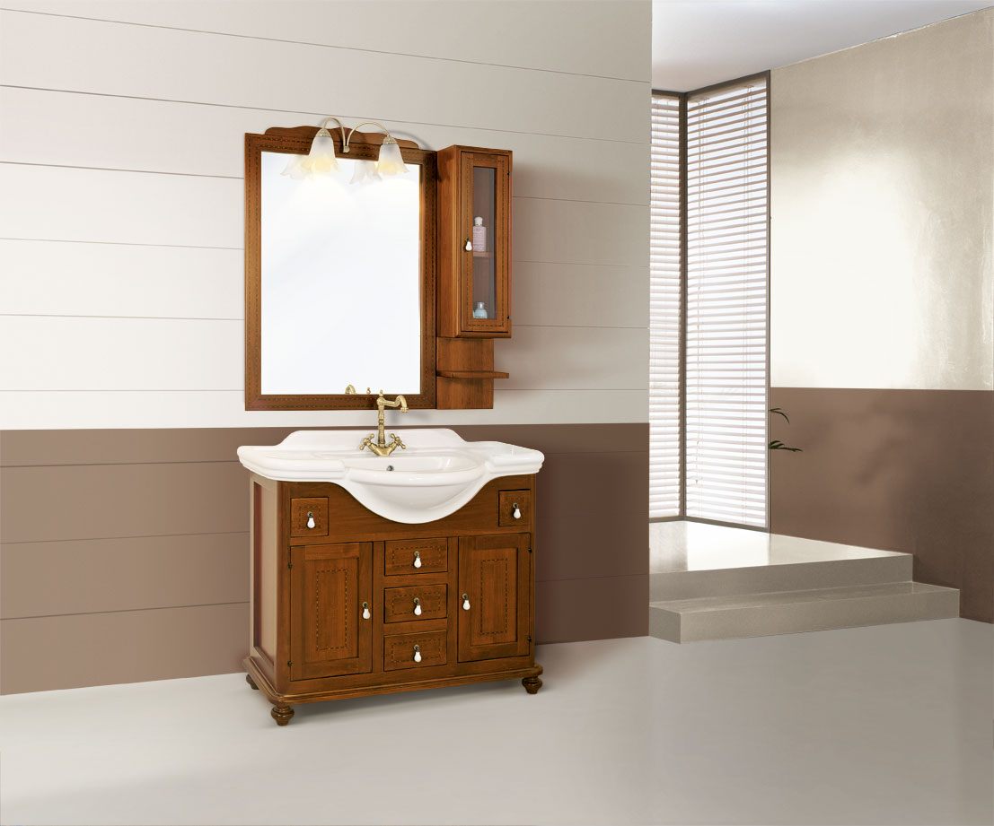 Con intarsio lineare, possibilità di averlo con tutto specchio oppure specchio con pensile.