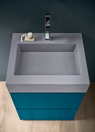 Blu oceano per questa soluzione monolitica eppure tanto intrigante. Sobrietà e rigore formale possono rendere il bagno per gli ospiti un luogo intimo da cui non si vorrebbe più uscire.
