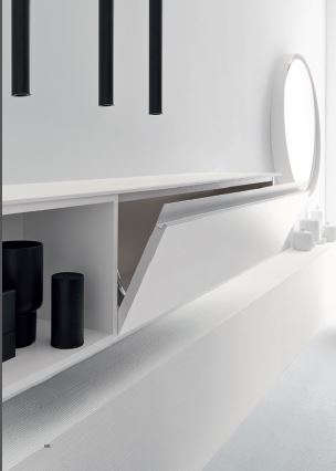 Il metallo si colora, si coordina con il mobile: crea più spazio vicino al lavabo oppure prolunga la specchiera e lo fa sempre con discrezione ed essenzialità.
