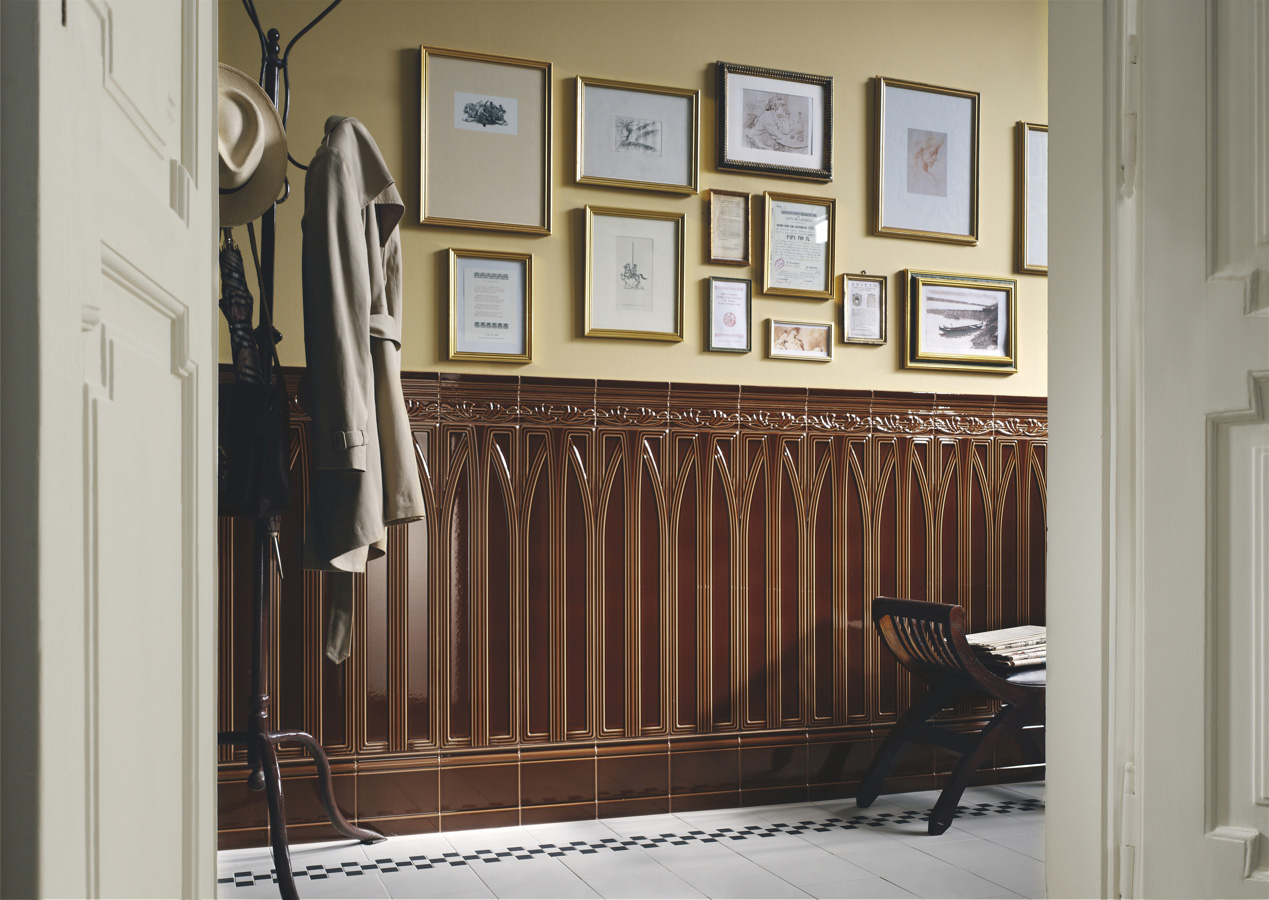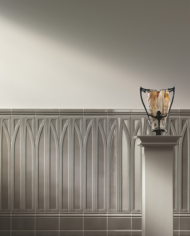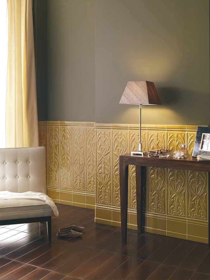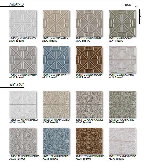 Bicottura pasta bianca da rivestimento con finitura sia matt che lucida craquelé. Costituita da 3 tipi di decori ben distinti: barocco, liberty, classico, proposti in diverse colorazioni classiche vittoriane.