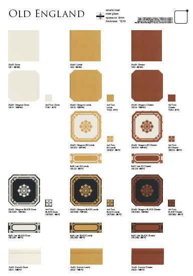 Bicottura in pasta bianca da rivestimento con superficie lucida e craquelé. Serie formata da diverse alternative di colori, decorazioni e formati. Estremamente versatile per ogni tipo di realizzazione: anglosassone, tradizionale, classica, liberty, contemporanea e shabby-chic. Adatta per restauri conservativi, ristrutturazioni, edifici storici e ambienti pubblici in particolare in quelli dedicati alla ristorazione dal gusto vintage e retrò.