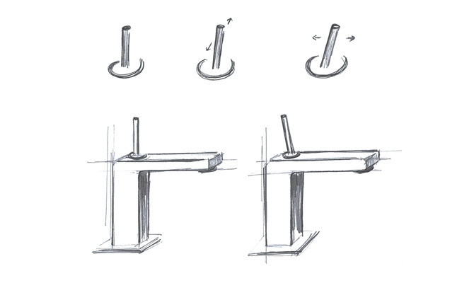 L’apertura e la chiusura dell’acqua vengono regolate tramite il movimento morbido e rotatorio di un sottile comando verticale, disegnato con particolare attenzione alle proporzioni e alla facilità di utilizzo, e pensato per un pubblico giovane che ama sperimentare nuove gestualità.