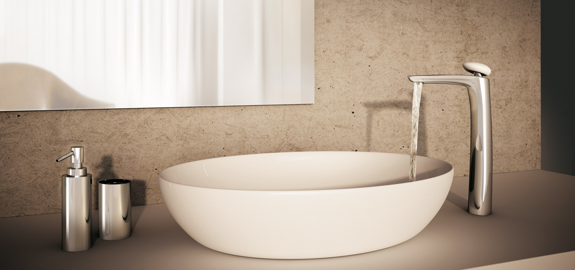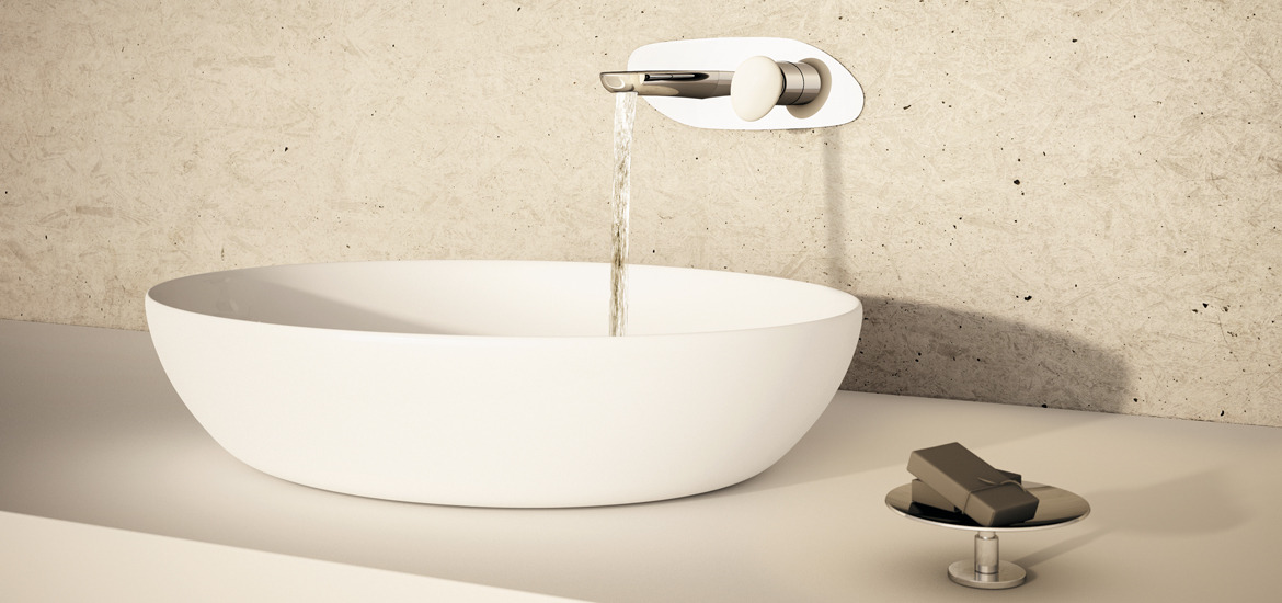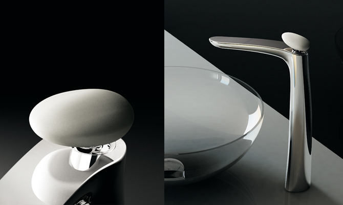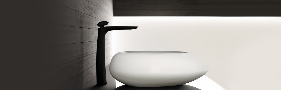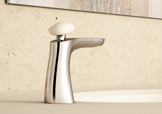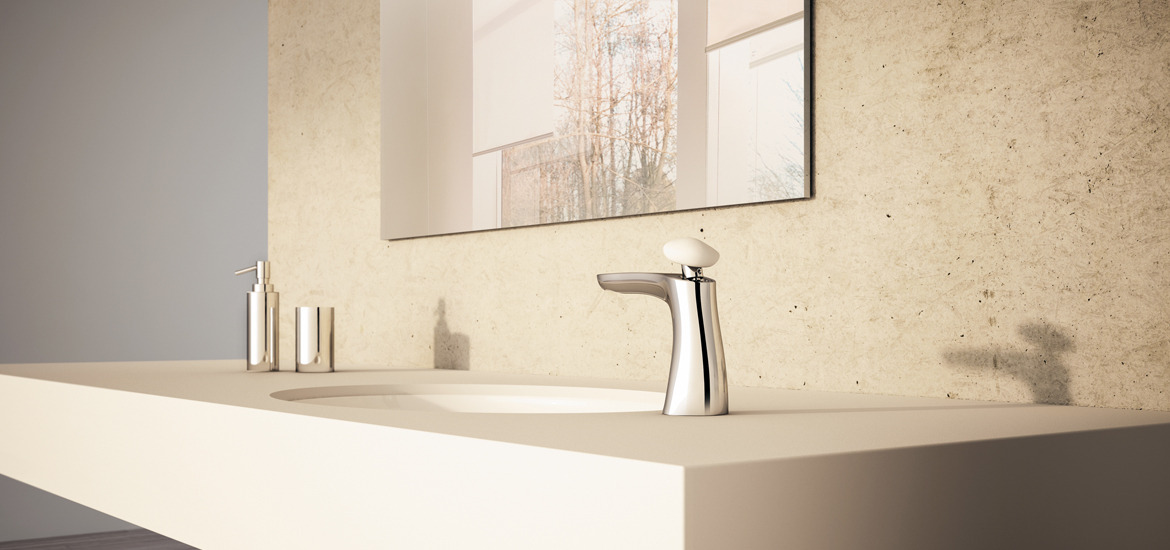 Il design di Synergy Stone 95 si contraddistingue per la rottura completa con tutti gli schemi fino ad ora adottati nel disegno di un rubinetto: le sue forme modellate, scultoree e asimmetriche sono completamente prive di regole e geometrie.