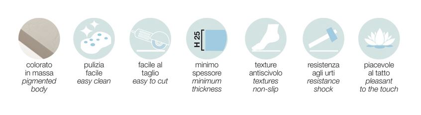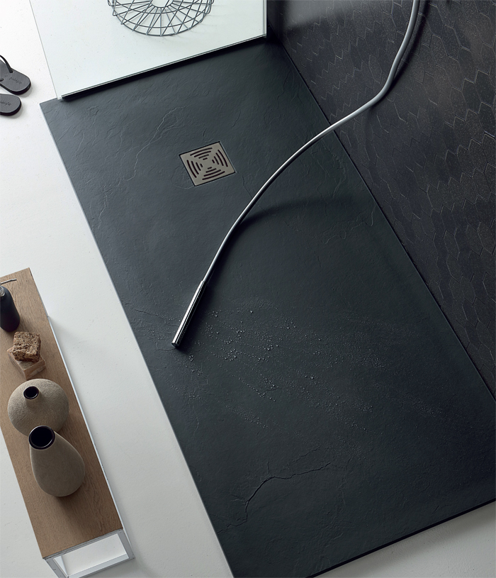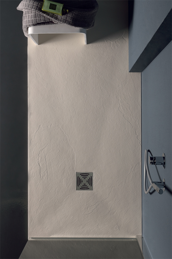 La resina miscelata con minerali garantisce elevate prestazioni tecniche e strutturali ed è ideale sia per ambienti interni che esterni. L’impasto è totalmente pigmentato all’interno e simile alla superficie del piatto doccia, antiscivolo con trama pietra.