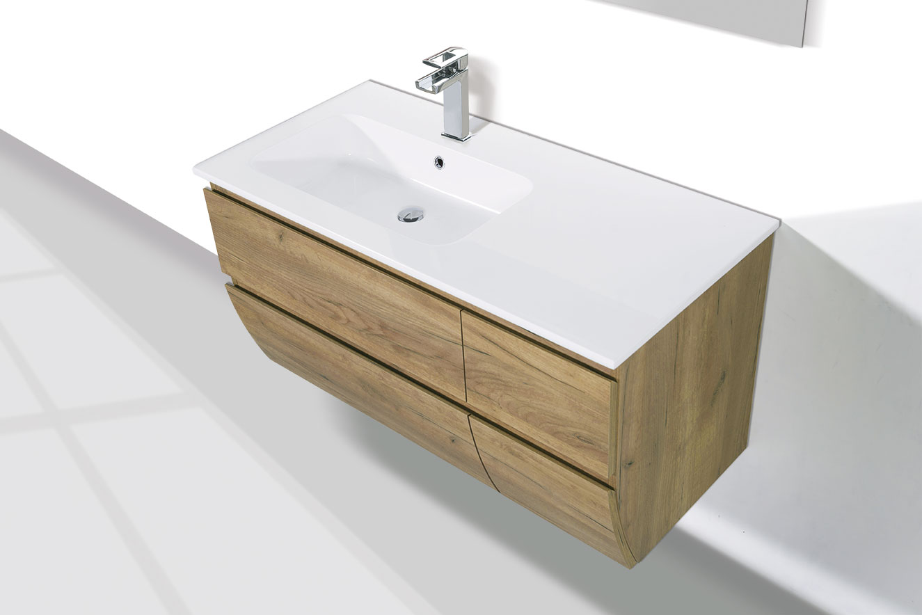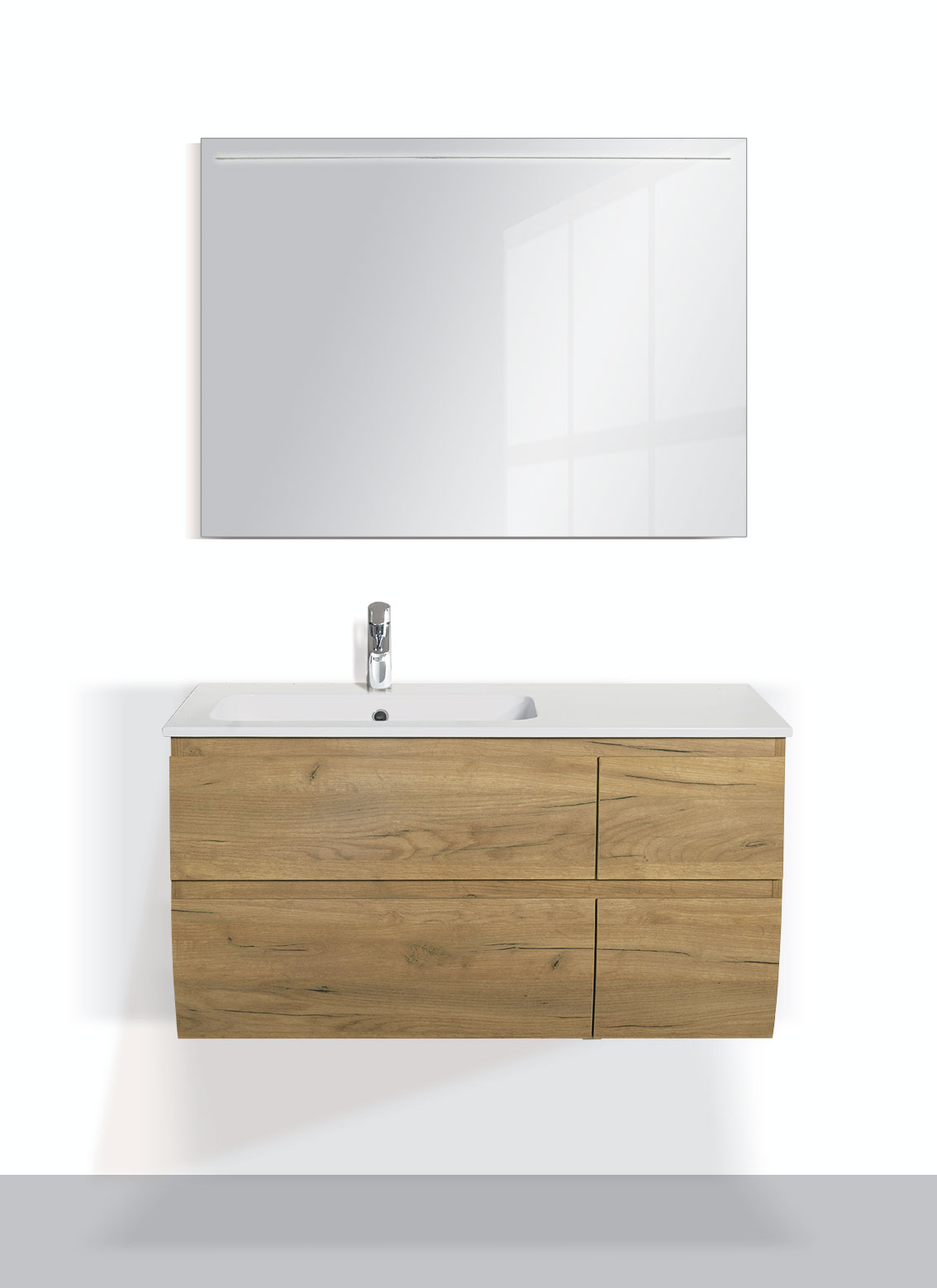 Mobile con lavabo integrato da 105 cm con quattro cassetti e lavabo integrato.