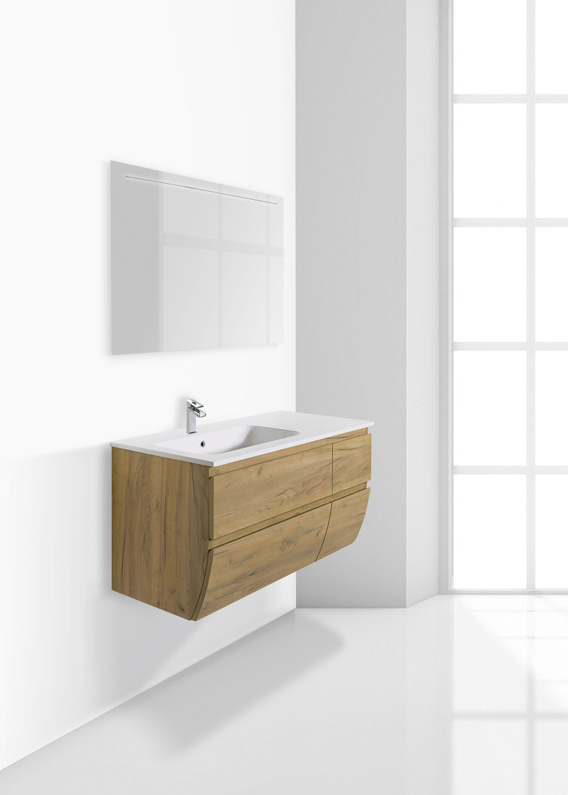 Mobile con lavabo integrato da 105 cm con quattro cassetti.