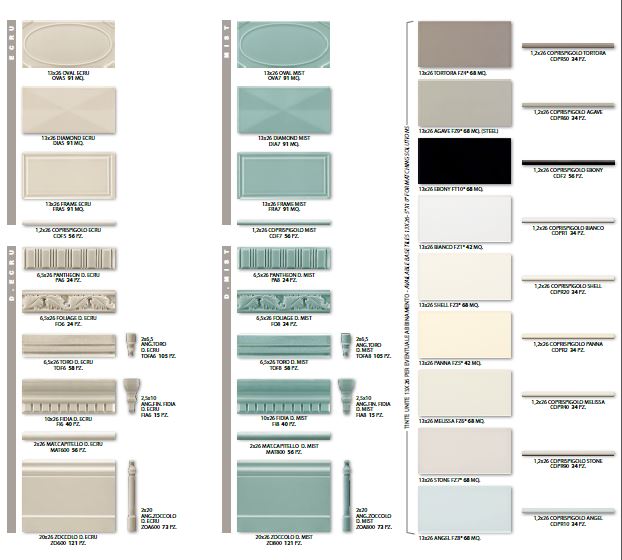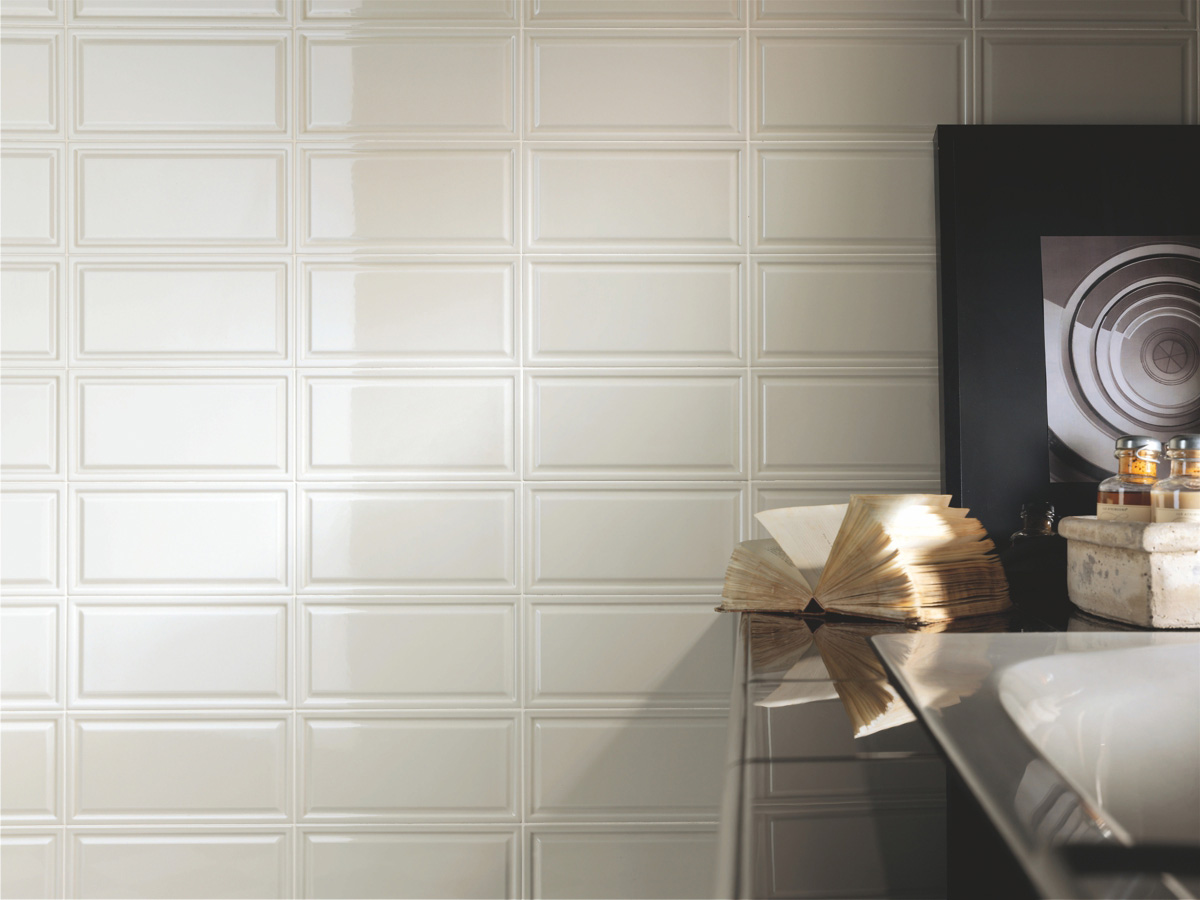 Bicottura tradizionale da rivestimento con superficie lucida. Nata da una reinterpretazione della classica piastrella diamantata “stile metro” e arricchita da altre 2 superfici a rilievo. Adatta alla realizzazione di ambienti sia contemporanei  che classici.