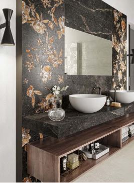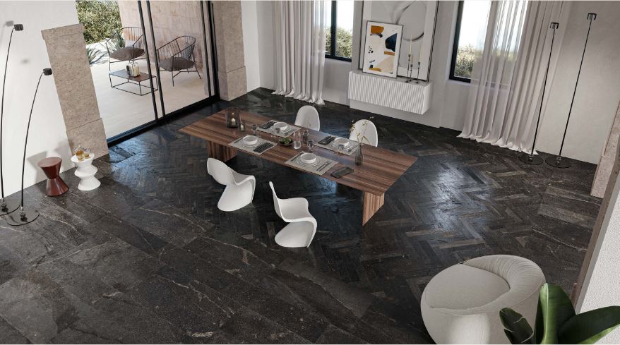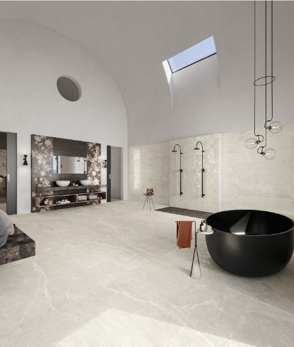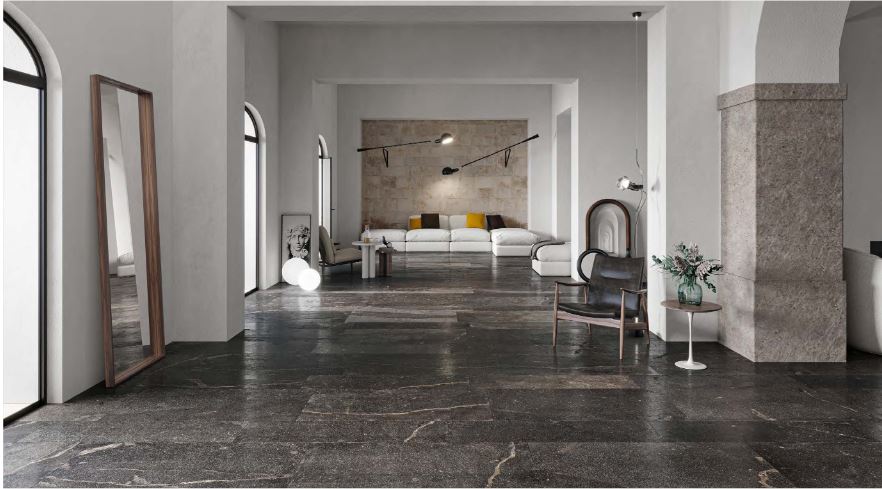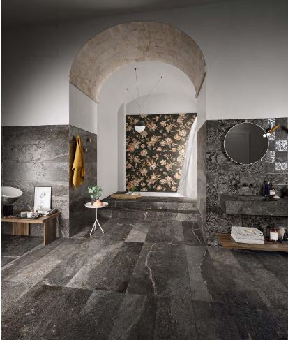 Il laboratorio di sviluppo Piemme oggi ripropone in chiave ceramica la pietra pece di Ragusa alla quale si ispira, declinandola in quattro eleganti varianti che spaziano dal nero al bianco, dal grigio al beige ed abbinandole ad uno stile abitativo di pregiato recupero storico con inserimenti decisamente contemporanei.
