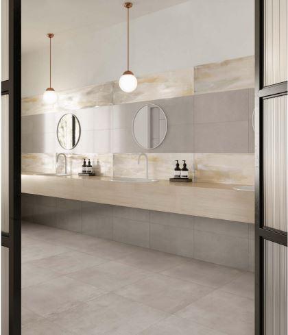 Materia nasce dall’idea sviluppata in Piemme per una nuova espressione della ceramica, una materia nobile con una grande storia creativa che ritrova e rilancia il proprio estro originario e, grazie alla sua tecnica grafica, analizza l’estetica di materie differenti, come il metallo, la pietra e la ceramica stessa.