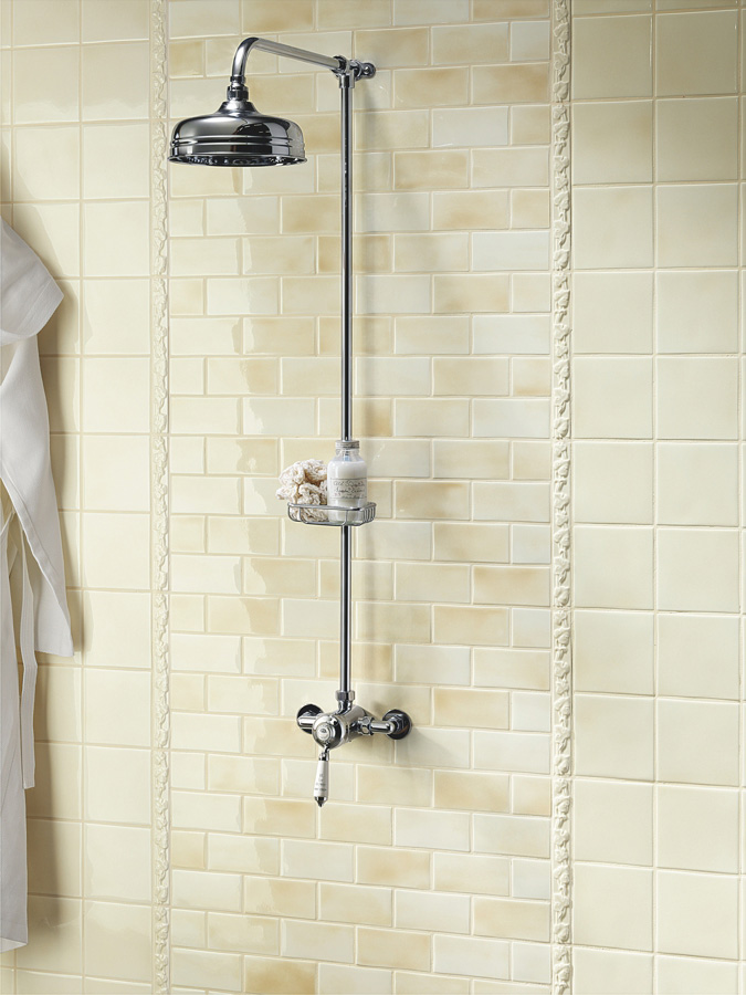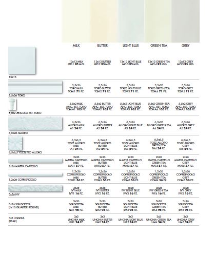Bicottura tradizionale in pasta bianca da rivestimento con superficie lucida e fortemente stonalizzata nel formato 6,5×13 e leggermente nel 13×13. Nella sua estrema semplicità questa serie si adatta ad ambienti, classici, metropolitani e retro’.