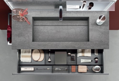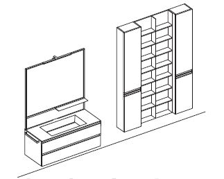 Posizionamento maniglie, Basi portalavabo, Basi contenitore, elementi a giorno, pensili e colonne tutto personalizzabile per un mobile bagno” Cucito su misura”.