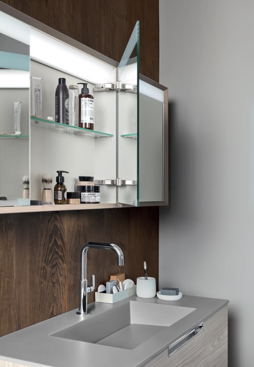 Posizionamento maniglie, Basi portalavabo, Basi contenitore, elementi a giorno, pensili e colonne tutto personalizzabile per un mobile bagno” Cucito su misura”.