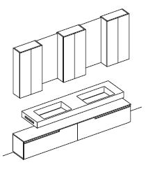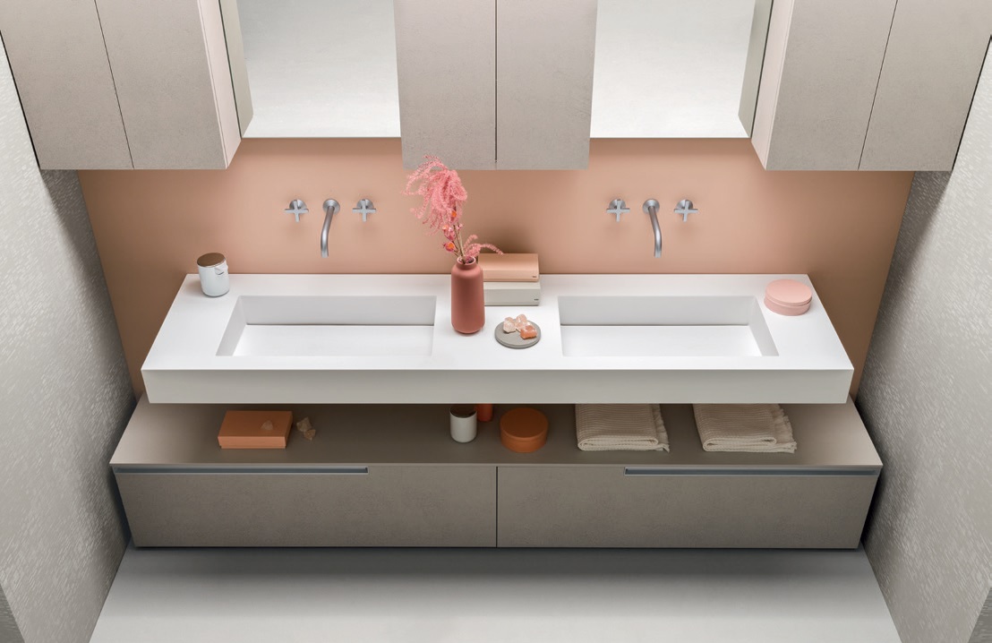 Posizionamento maniglie, Basi portalavabo, Basi contenitore, elementi a giorno, pensili e colonne tutto personalizzabile per un mobile bagno” Cucito su misura”.