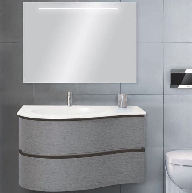 Mobile sospeso con lavabo integrale in resina e specchio Disponibile in varie Finiture