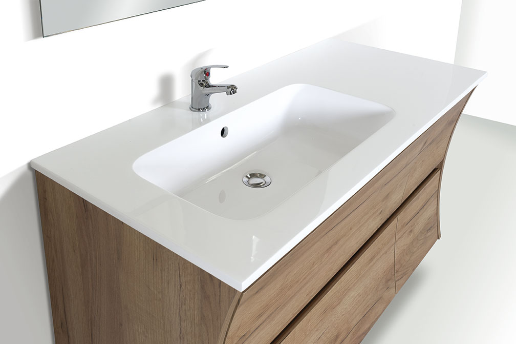 Mobile sospeso da 105 cm con due cassetti e lavabo integrato.