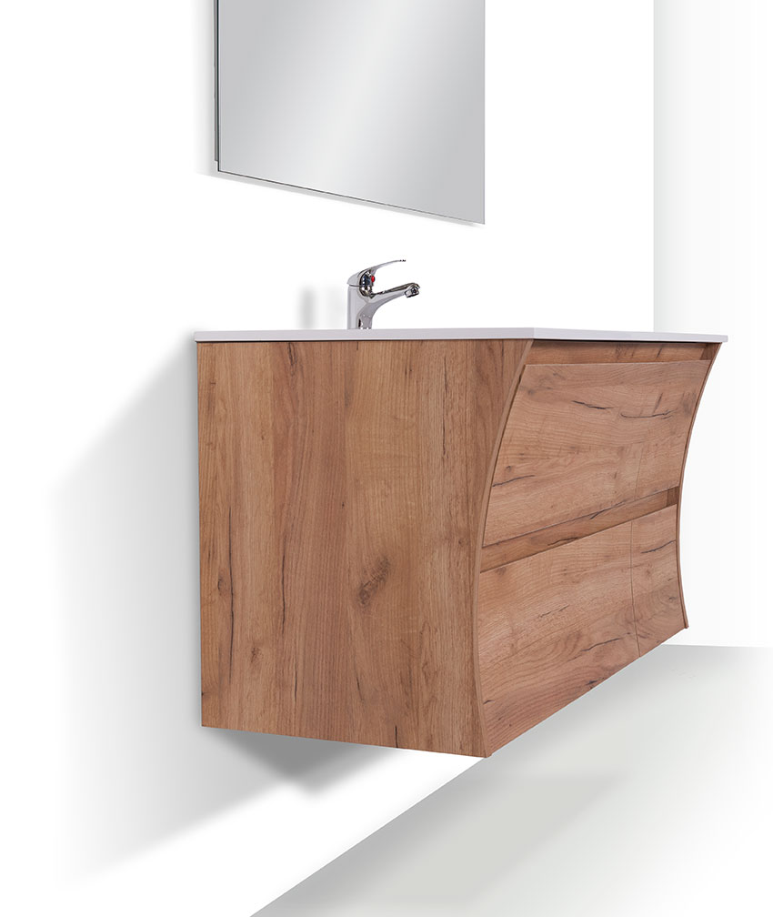 Mobile sospeso da 105 cm con due cassetti e lavabo integrato. Disponibile in varie finiture.