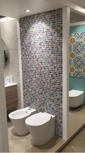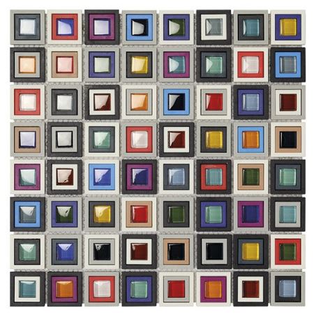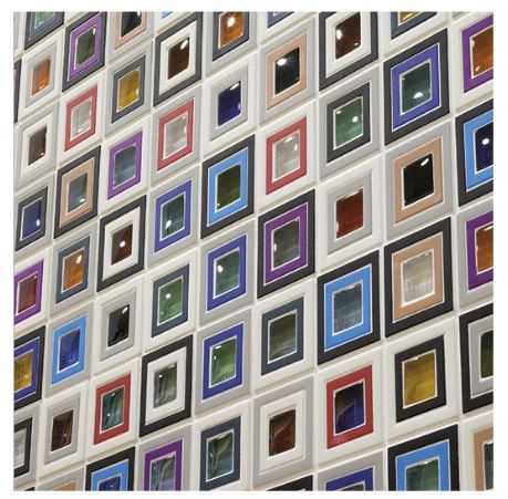 L’ultimo degli incredibili abbinamenti dove convivono tessere di vetro lucido in vari colori con cornici e tessere di plastica riciclata! L’effetto ipnotico, multicolore, innovativo sarà il perfetto complemento del vostro ambiente moderno e minimale. Spessore 8 mm, su rete. Ok rivestimento.