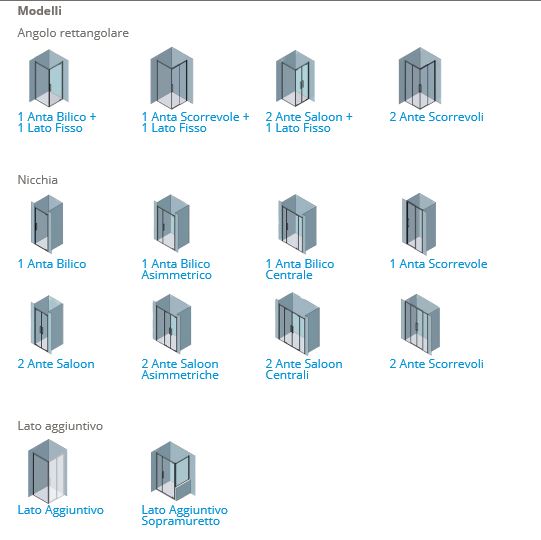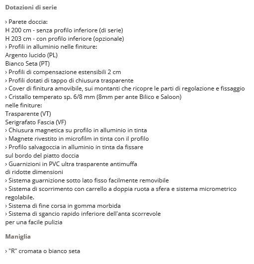Parete Doccia H 200cm, Cristallo temperato da 6/8 mm nelle finiture:
