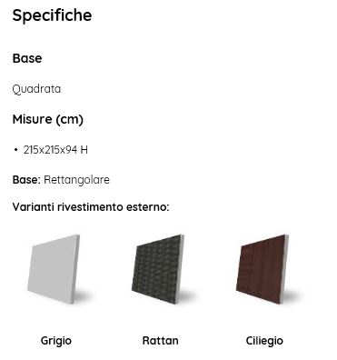 - color ciliegio o grigio, dotata di scaletta d’accesso con corrimano in alluminio (tranne modello R 200) e panca laterale;