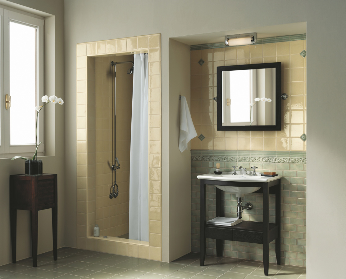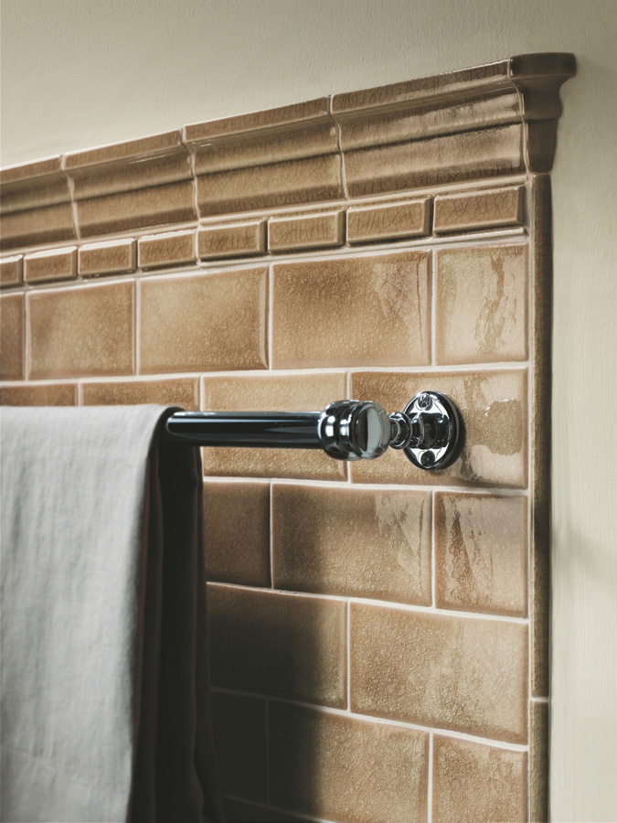 Bicottura tradizionale in pasta bianca da rivestimento con caratteristico smalto lucido craquelé cristallino. Adatta ad ambienti tradizionali.