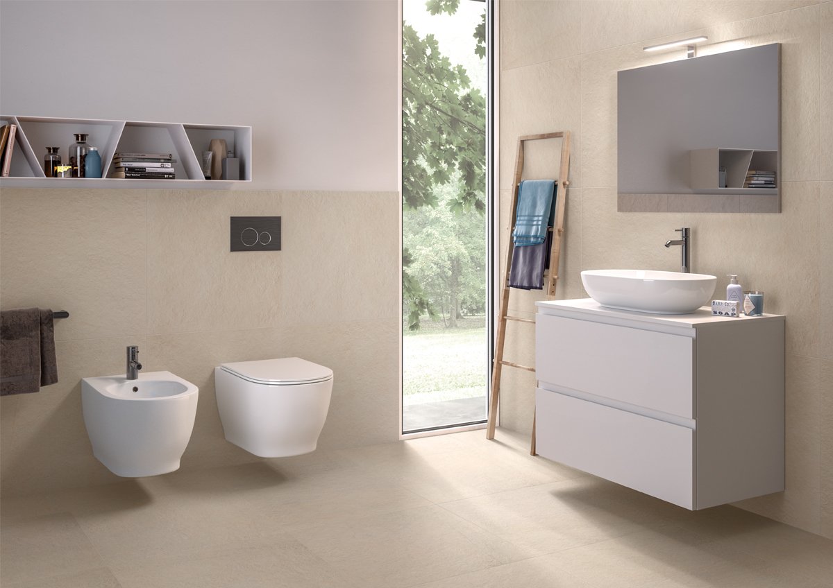 L’armoniosa integrazione di dolci curve e linee sfaccettate conferisce una concezione modernista al completo bagno. Questo insieme di alto profilo concede ampio spazio alla vanità. Moon è disponibile nei formati monoblocco, a muro e sospeso in colore bianco alpino.