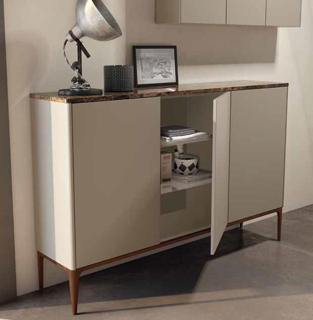 Fianchi, scocca e frontali delle basi sono realizzati nelle finiture laccate/perlate. I pannelli sono in MDF idrofugo.