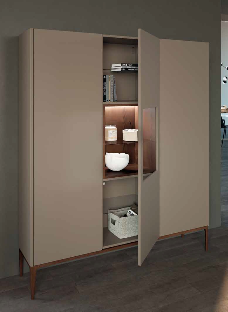 Nel modello Suite ritroviamo la modularità più completa con una connotazione elegante e raffinata data dai piedi sagomati in legno di Frassino massello ( disponibile chiaro o scuro). Anche l’interno dei cassetti è realizzato in legno abbinato alla struttura dei piedi.