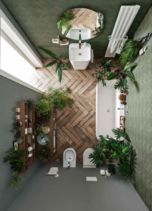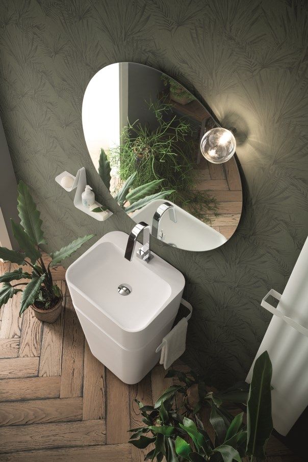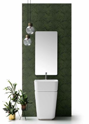 Il lavabo monolita può essere installato a centro stanza o accostato a parete.