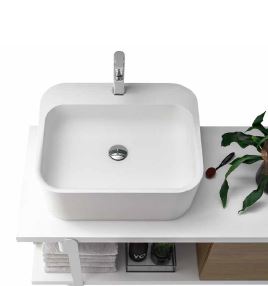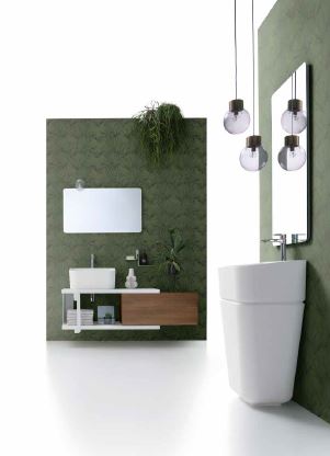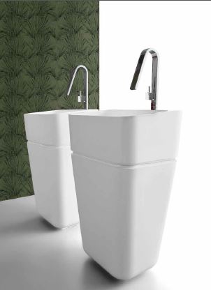 Grazie all’ingegnoso incastro, che contraddistingue il lavabo, è possibile decidere se avere il lavabo nella configurazione da terra o in appoggio alla base.