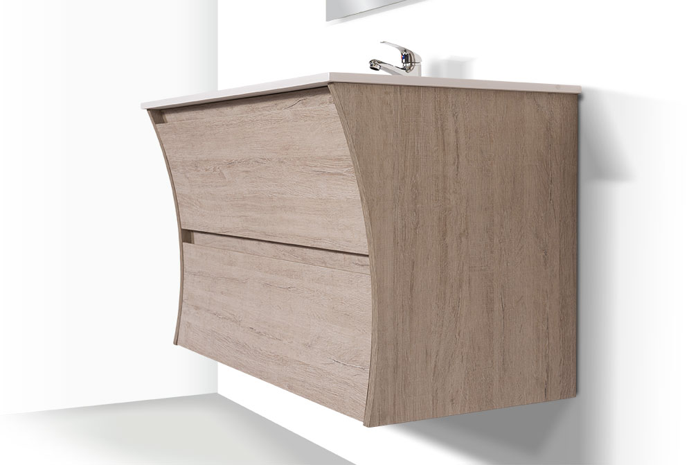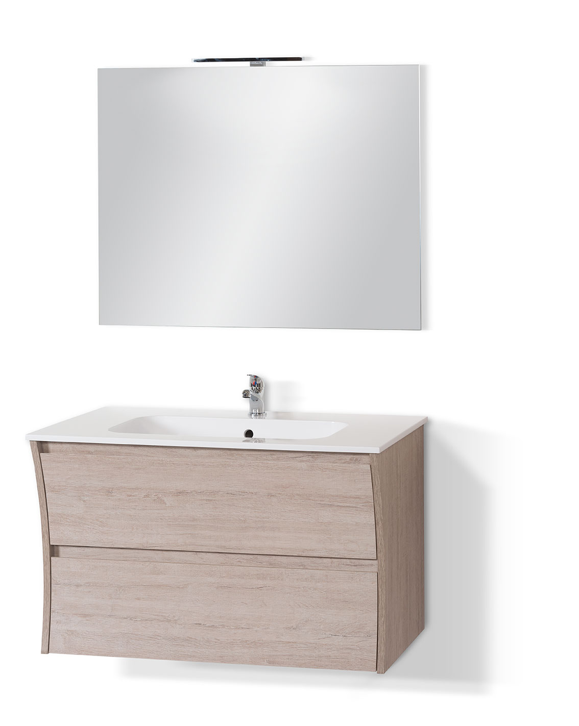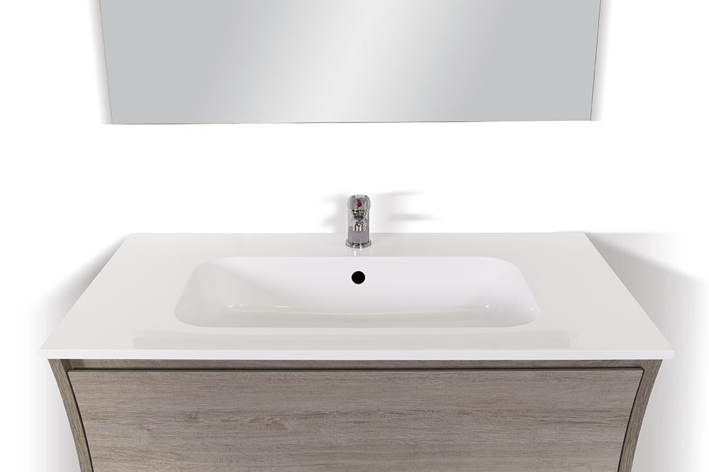 Mobile da 90 cm con lavabo integrato e due cassetti. Con chiusura “soft”. Disponibile in moltissime finiture.