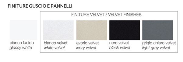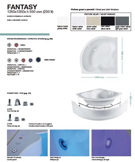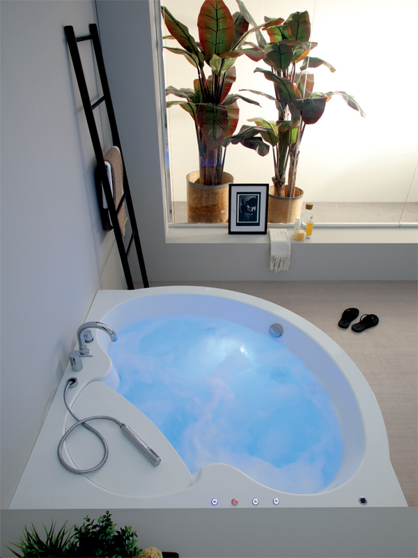 Una forma insolita ed ergonomica, con gli interni ampi ed un comodo piano di appoggio integrato per avere sempre a portata di mano l’occorrente per il bagno. Le varie possibilità di installazione e di combinazione dei colori e delle finiture ne fanno un prodotto versatile e di grande libertà progettuale del contesto in cui è inserita. Disponibile nella versione basic o idromassaggio e cromoterapia può essere accessoriata con il gruppo rubinetto tradizionale a 4 fori o a tre fori con colonna di scarico con erogatore.