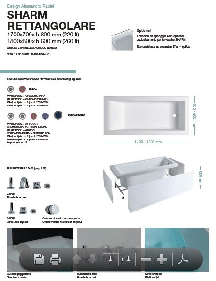 Forma tradizionale in due scelte dimensionali. Un modello equilibrato e contemporaneo nei dettagli e nelle finiture, con la possibilità di scelta della versione basic o quella idromassaggio, cromoterapia e airpool. Una forma base per l’esaltazione dei colori tenui dell’acqua nell’azione energizzante della cromoterapia.