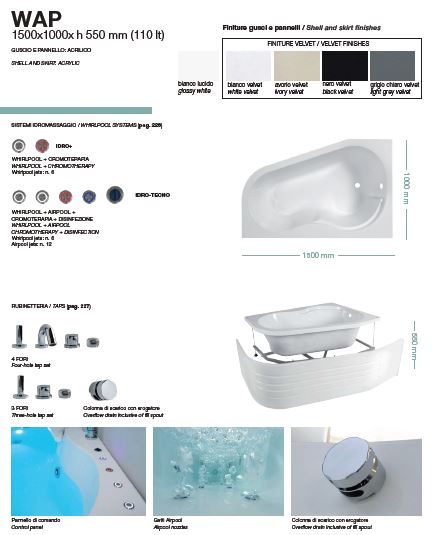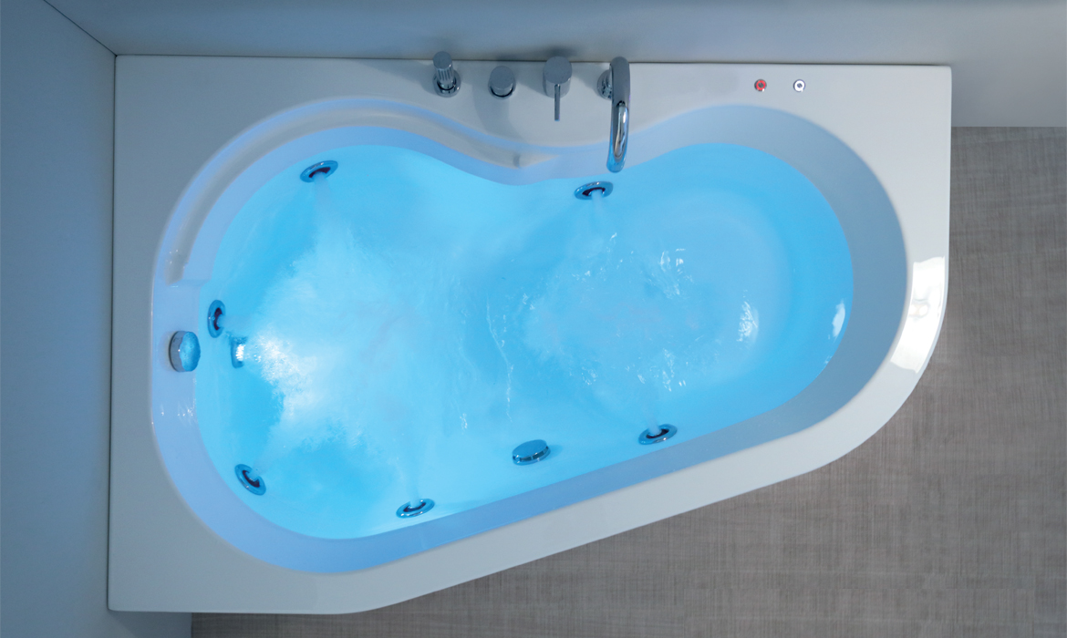 Con la sua linea morbida è comoda funzionale e personalizzabile. Posizionata all’angolo ottimizza lo spazio con le sue dimensioni e arreda con eleganza in tutte le varianti colore, offrendo tutti i comfort e le caratteristiche di benessere delle vasche idromassaggio Colacril. Per un uso quotidiano è abbinabile al box doccia di vetro curvato, che seguendo le linee della vasca arricchisce in modo elegante il design minimale e lo spazio bagno. Disponibile nella versione basic o idromassaggio e cromoterapia può essere accessoriata con il gruppo rubinetto tradizionale a 4 fori o a tre fori con colonna di scarico con erogatore.