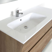 Mobile sospeso da 105 cm con due cassetti e lavabo integrato.